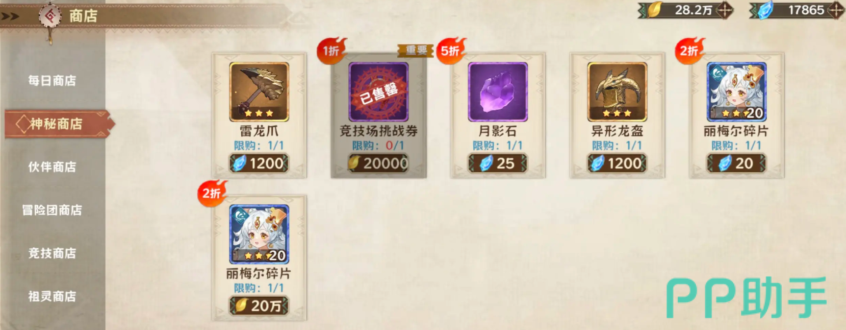 关于突破果实的使用策略同样不可忽视。在游戏第一天,神秘商店中出现的五折钻石购买的突破果实应全部买下,这类折扣资源性价比极高。但若需用金币兑换同类道具,则建议暂时跳过,因前期金币极度紧张。在各类商店采购方面也需讲究优先级:每日商店可根据个人需求灵活选择商品,并记得顺带购买织物残叶这一实用材料;神秘商店则应在首日集中资源拿下5折突破果实、普通抽卡券、竞技场入场券以及价值600的阵营抽取机会。