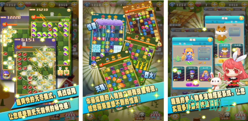 果C打豆豆是拥有多样化玩法的打豆豆主题消除游戏,个性鲜明的画面呈现跟舒适手感令人着迷,美术UI小清新也有着萌宠可以培养,爽快的消除过程和多样模式加持值得体验,花哨的消除效果跟环绕音效带来视听享受,别样的打豆豆主题消除玩法十分解压,感觉压力大的话就来试试果C打豆豆吧。