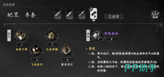 内功心法的选择直接影响降龙流派的上限发挥,建议围绕三套核心组合进行灵活切换,以应对多样化的战斗场景。常规输出配置推荐使用龙象般若掌 + 百战圣功,此组合可提升15%外功伤害,并额外提供8%防御与10%攻击力加成,属性全面均衡,适用于日常任务与副本挑战。若追求极致爆发,则可选用暴击流方案:龙象般若掌 + 天魔大法,显著提高暴击率,在配合技能无敌帧的情况下,短时间内即可打出成吨伤害。