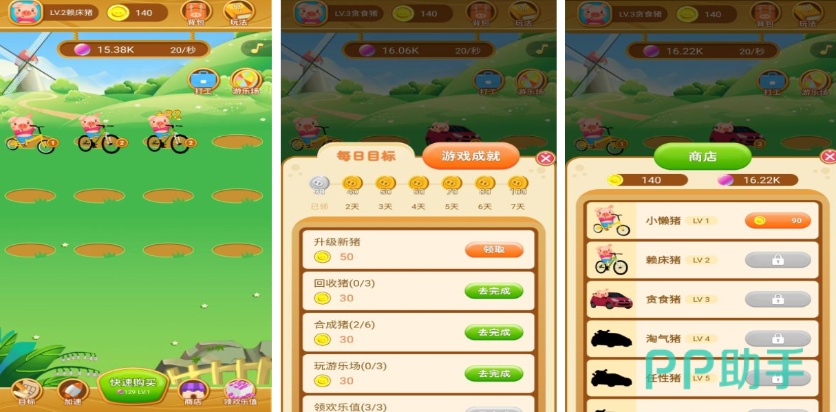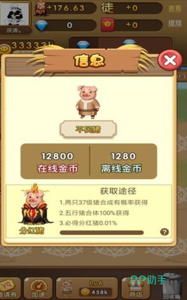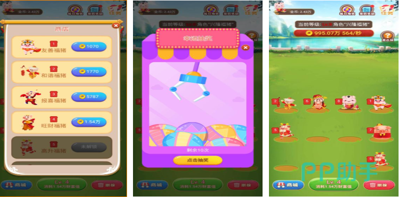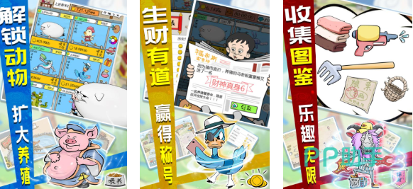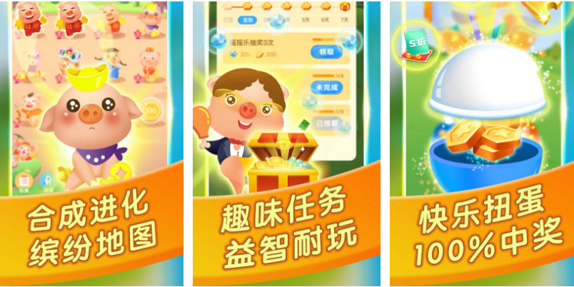 这是款能自动合成小猪完成养成任务的养猪佳作,可以消耗金币解锁多种多样的可爱猪猪完成合成,合成更高等级的小猪获得的收益也会更多一些,游戏画风卡通也有着许多萌系猪猪可以解锁,休闲耐玩的合成小猪设定增添了游戏的魅力,合成类的任务非常丰富能让大家解锁出更多新奇的猪猪哟。
