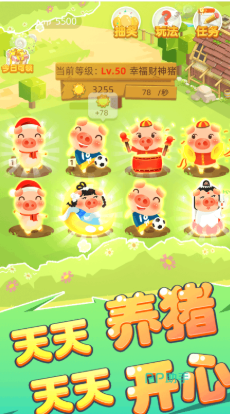 快乐养猪场是养猪场主题游戏里的佼佼者,全面创新的合成小猪设定能满足养猪游戏爱好者的需求,不同等级的小猪猪会给大家提供各种福利,轻松快乐的合成养成体验爱来极高沉浸感,加入了抓娃娃类似的抽奖玩法玩起来更为刺激,颠覆传统的合成养成小猪的设定给人提供不错的新鲜感,一起在小猪遍地的养猪场里互动吧。
