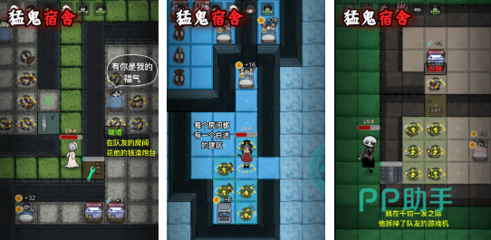游戏会和塌房有一些相似,晚上猛鬼就会袭击宿舍楼,你就需要通过睡觉去组建防御阵线。可以找一个有空床的宿舍,然后直接躺上去,此时就可以获得金钱奖励。当然你也可以选择用钱去购买一些拥有独特效果的防御塔防鬼。别忘记你还可以把ai队友的防御塔直接的卖掉,能迅速的积累资金,只要你能够熬过晚上没有被鬼杀掉,那么你就意味着获胜,所以你想挑战的话就赶紧下载游戏吧。