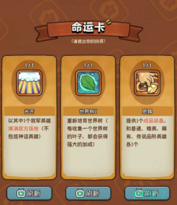 在众多命运卡牌中,世界树属于一种特殊状态的存在,实际出场频率并不高。每局战斗开始前,玩家可通过抽卡获取不同稀有度的英雄单位,其中包含神话级别角色。而命运卡系统则融入了多种影响胜负的关键元素,秘密卡牌便是其中之一,能显著改变战局走向。