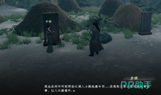 获取线索后,进入实地探查阶段。前往云鹤村北侧的后山入口,沿石阶小路向上行进。途中注意观察地形特征,依据“双松伴墓”的描述进行定位。当发现两棵树干粗壮、枝叶交叠的老松树时,其下方即为目标地点。靠近后可见一块青灰色墓碑,上刻“虞令羽之墓”五字清晰可见。此处即为任务的核心交互点,标志着已成功找到祭拜目标。