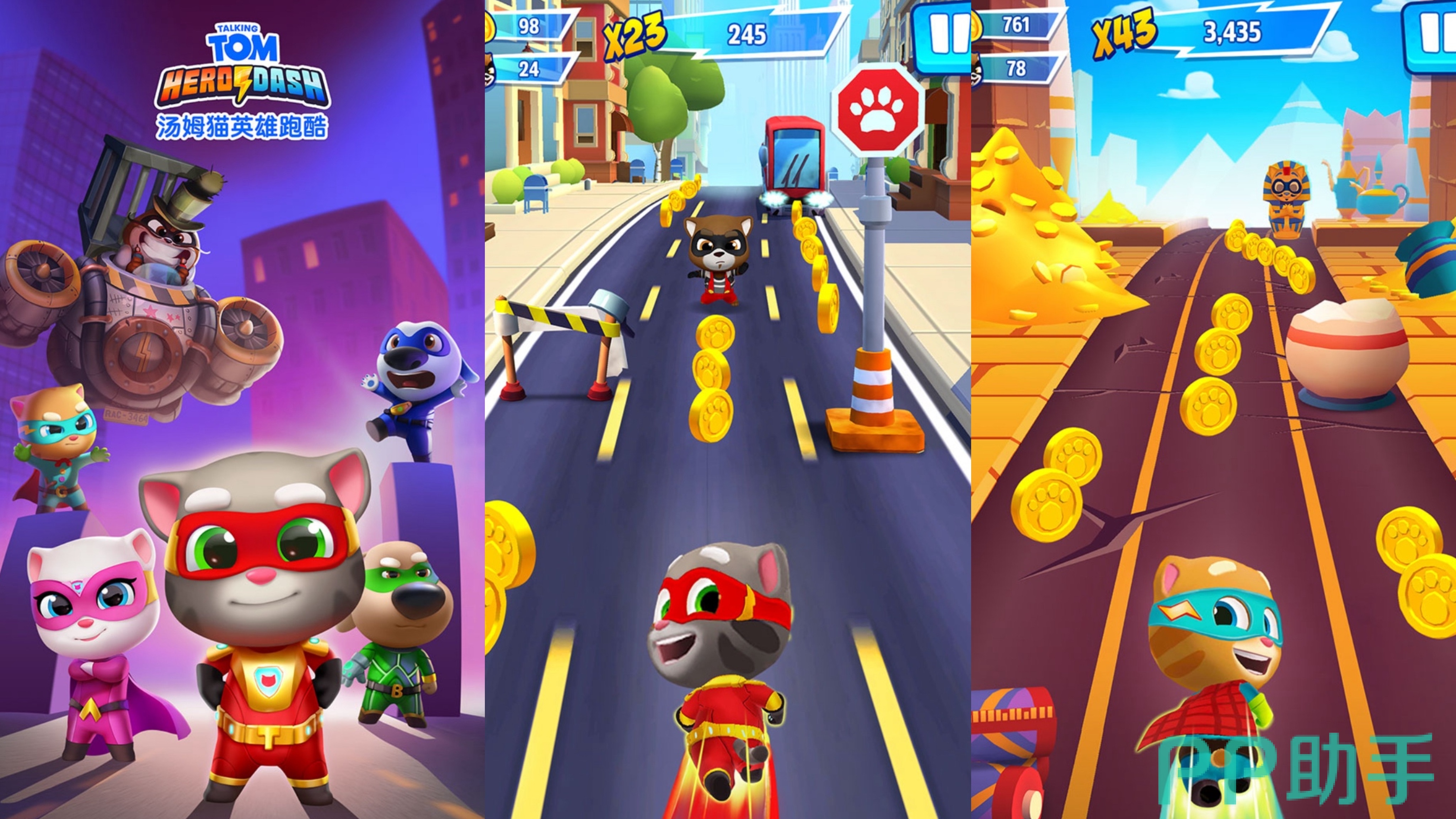 超级英雄汤姆猫家族来啦!这次我们将会化身为勇敢的猫猫超人,去展开一场打击罪恶的正义跑酷之旅!当然,正义总是曲折的,在跑酷的过程中,我们会遇到各种各样的关卡和障碍,我们需要克服障碍,并且将沿途的金币收入囊中,直到将大boss浣熊打败,这样正义跑酷才算胜利。等到金币足够多的时候,我们就可以重建自己的家园,还可以收获更多的跑酷地图,拥有更多更有趣的跑酷体验哦!