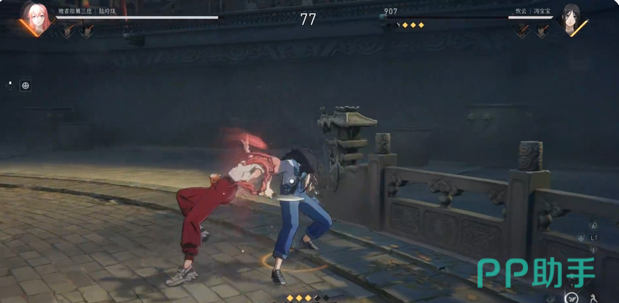 基础普攻方面,陆玲珑拥有四段连击:第一段为向前挥出掌击,第二段利用臂力推开敌人,第三段则是突进式手刀攻击,第四段为蓄力踢击,可将目标击飞。常规输出节奏推荐使用前三段连招并主动取消后摇,以便实现高频连续打击,提升输出流畅性。