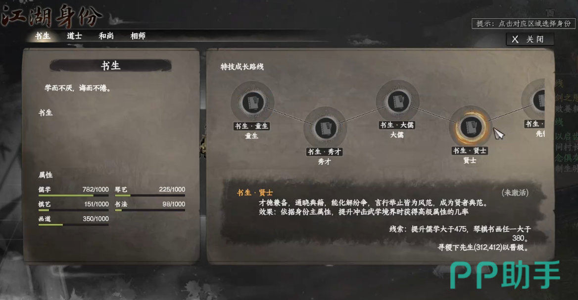 在《下一站江湖2》中,玩家不仅能体验快意恩仇的武侠人生,还能通过多重身份系统深入感受江湖百态。其中,书生身份是许多玩家关注的重点之一。想要解锁这一身份,需完成特定流程并和关键NPC互动。以下是关于如何获取书生身份的详细说明,帮助玩家顺利开启寒门书生之路。