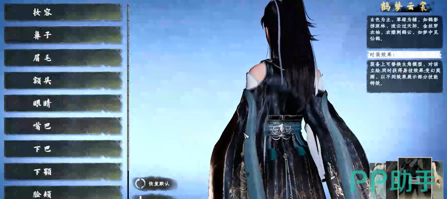 本作的“易容”系统支持对脸部结构进行精细化调节,涵盖五官比例、轮廓线条、眼部形态、唇形设计等多个维度。此外,还包含妆容选项如眼影色调、唇色搭配等细节设置,极大提升了角色造型的真实感与多样性。若操作过程中出现不满意的情况,系统提供“恢复默认”功能,便于重新开始调整,整体交互逻辑清晰且用户友好。