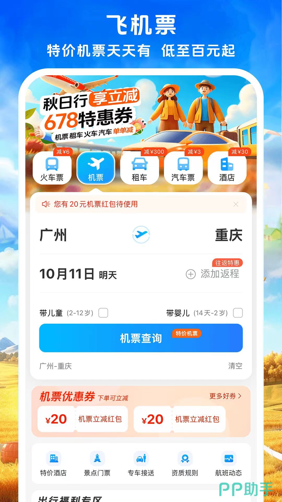 虽然名称中带有“火车票”,但该应用同样支持机票查询与预订服务。它具备行程管理功能,可自动生成详细的出行计划表,方便用户随时查看航班信息。支持在线办理值机手续并自由选择座位,减少机场排队等候时间。另外,平台还设有乘客互动社区,便于同行旅客交流信息,增强出行趣味性与便利性。