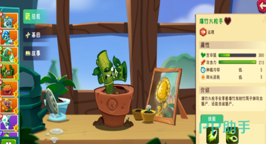 虽然生命值偏低,但爆竹火枪手的输出能力极为强劲,且阳光成本极低。将其部署于后排安全区域后,可通过连射技能同时攻击四个敌人,兼具群体伤害与击退控制效果,是清理密集僵尸阵型的高效选择。