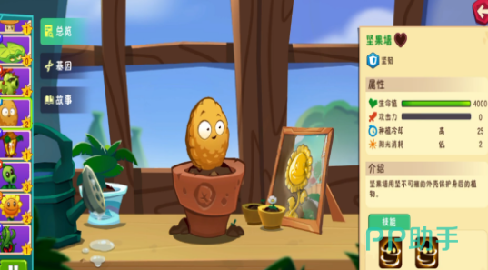 拥有高达4000点的生命值,坚果墙无疑是防线中最坚固的存在。配合“防守反击”技能,不仅能恢复自身血量,还可生成护盾进一步提升生存能力,使其成为抵御强力敌人进攻的第一道铁壁。