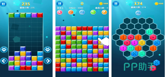 在经典的俄罗斯方块玩法上又进行了升级,还添加了消除的创意元素。比如六边形消除等等。游戏中掉落出来的方块都是以立体的形式进行展现,您可以合理的旋转图形,只要能够填满整行就能快速消除。其中还有排行榜的系统,您在每次获得的分数之后都可以直接储存到排行榜中。