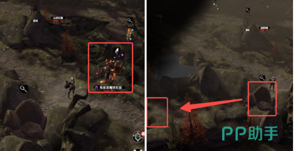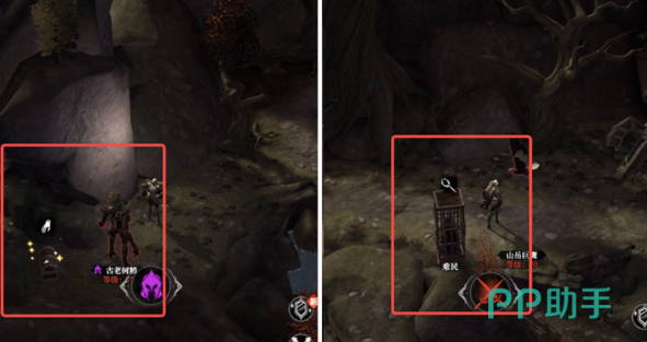 从资源获取角度出发,该区域遍布补给站和隐藏宝箱。击败炼狱恶魔后,其身后会显现一个宝箱,内含基础物资与实用装备。沿途虽有多处巨石阻挡,但使用爆炸物清除后不仅能通行,还可额外获得资源奖励。地图左侧栖息着一位古老树精,成功将其击败即可解锁专属宝箱。此外,击杀特定敌人可能触发救援被困平民的特殊事件,完成后可为队伍新增两名工匠,极大提升后期建造效率。