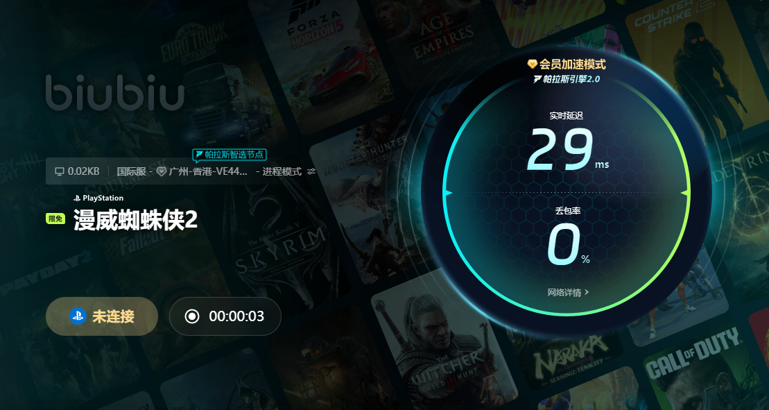 操作流程十分简便:登录后搜索“漫威蜘蛛侠2”,点击启动加速即可完成连接。下次再进入该游戏时,无需重复查找,系统将自动保留记录于主界面,方便快速开启。只要设备具备基本运行条件,配合加速服务便能大幅降低闪退概率,同时提升画面帧率与场景加载效率。