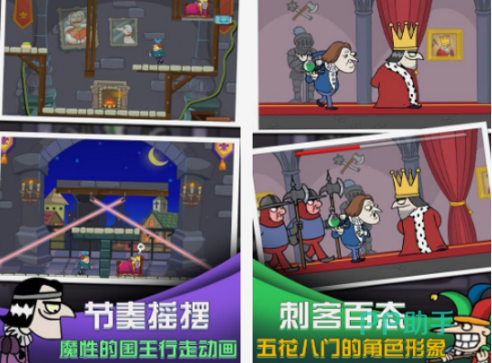 属于玩家需要完成相应的任务以后,才能成为国王,充满着趣味性,玩法有非常独特的。因为只有顺利的将国王刺杀以后,自己才能成为新的国王,而在整个过程当中需要注意的就是,一定要小心翼翼,因为在被发现的情况下,自己不仅不能完成任务,还会进入监狱里,要展开一段脑力之间的较量。利用各种各样的机会,让自己能离得国王更近一些,才有机会完成任务。