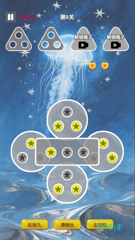 第三个要去分享的就是这款《梦幻乐工厂》手游,游戏在规则上就是要去集结各种不一的颜色的零件,同时需要按照层层消除的方式去进行,我们可以看到其中的颜色还是非常的丰富,并且每一个关卡之中需要达标的分数是不一样的,从最开始的简单一直到后续更高难度的关卡都有很多。