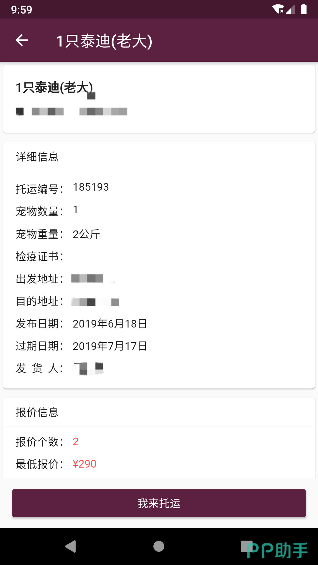2、《一喂宠物托运》