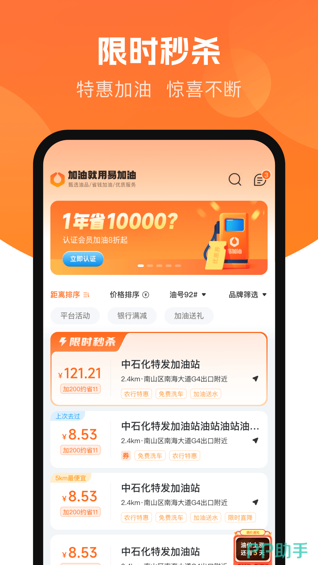 这个平台经常推出限时特惠和秒杀活动,让用户以低于市场价的价格加满油箱。注册成为会员后,每月还可领取专属优惠券,持续享受加油减免。同时,应用内置的地图功能可以帮助用户查找附近的加油站,并提前了解该站点是否配备适合自己车型的加油枪,避免现场等待或不兼容的问题,提升加油体验。