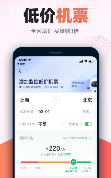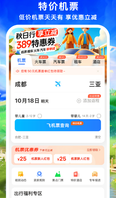这款多功能出行类应用不仅覆盖火车票、酒店及景区门票预订,也整合了国内外特价机票资源。平台每日更新低价航班推荐,帮助用户锁定最优价格。特色服务如开售提醒、候补人数统计等功能,进一步增强了购票成功率。学生群体还可享受专属优惠,实现全年低成本出行,满足多样化旅行需求。
