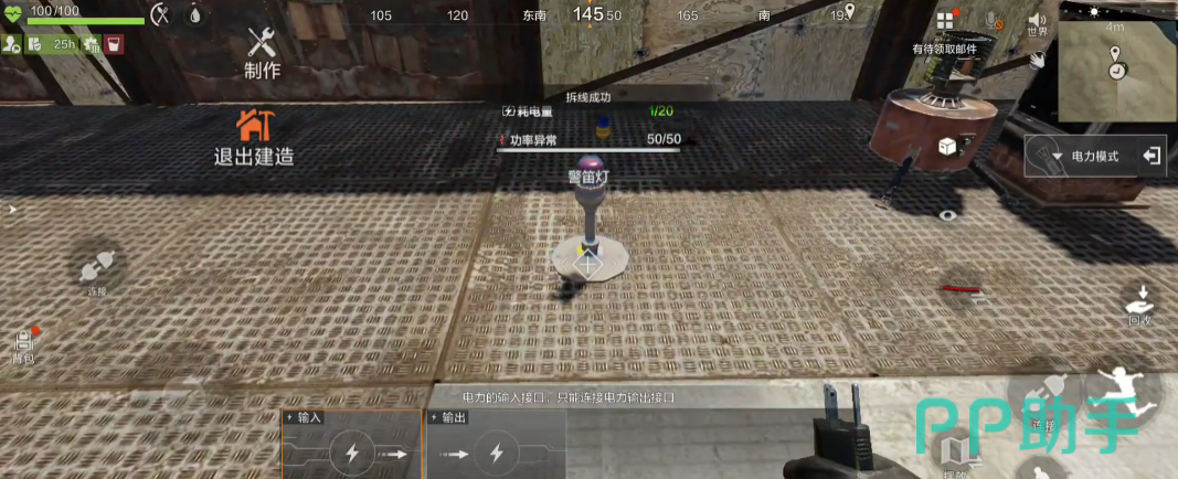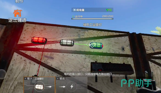 玩家可以从任意一种发电设备开始搭建电路,安装完成后界面会显示电力连接状态。点击对应按钮即可进入布线模式。通过下方的连接反馈区域,可以实时查看电路是否接通成功。此时,将用电设备的输入端口与电源线路相连,建议优先连接工业壁灯作为测试负载。该设备不仅支持电力输入,还能作为电力输出节点,实现多个设备之间的串联供电。