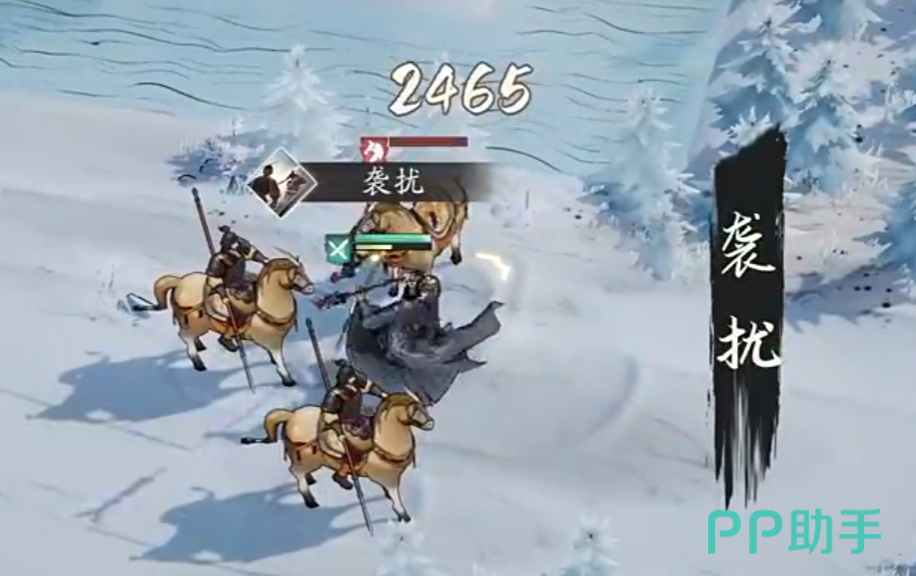 他的骑兵技“扰袭”会在主动攻击时让自己的物攻上升8%,并且主动攻击后获得继续移动,“探囊取物”会对敌人造成100%伤害,并施加移动力降低2的负面1回合,若使用时身后1格有空位,可以将敌军位移到空位处。