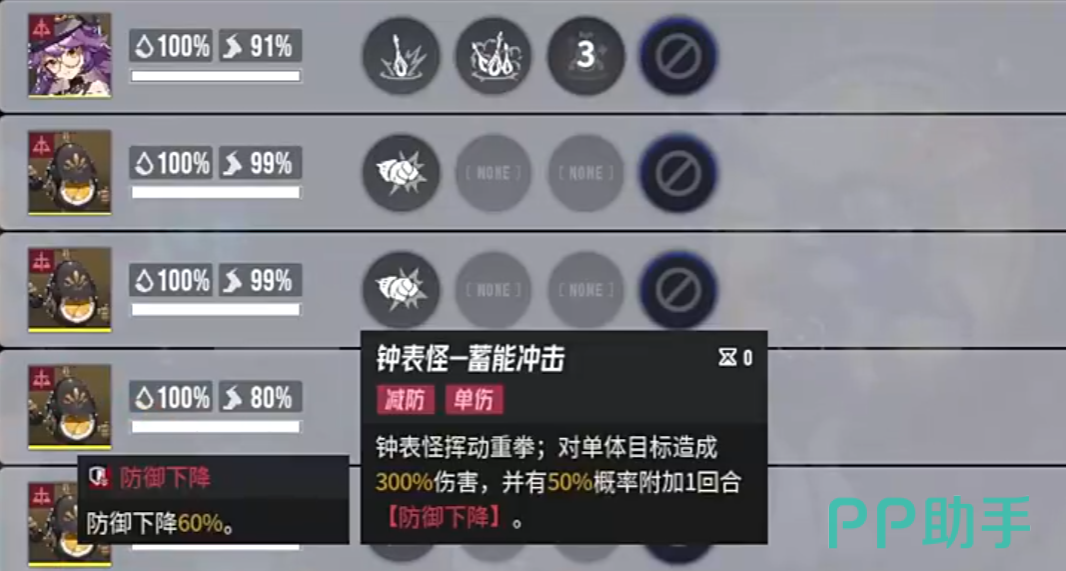 战斗中最棘手的部分在于“时光掌控”机制,该效果会在战斗中持续叠加,并永久降低我方角色的速度值。为了有效应对,玩家需依赖多段攻击或高频输出角色来逐步削减其层数,从而避免被压制行动顺序。