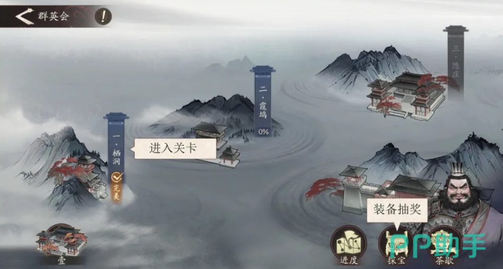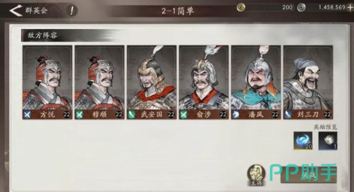 进入群英会界面后,玩家可看到多个关卡章节。每成功首次通关任意关卡,均可领取对应的首通奖励,其中包括基础主将装备。特别地,当首次通过标注为“简单”难度的关卡时,额外可获得“食之精”。该道具可用于仙人探宝中抽取稀有装备,是前期积累装备的关键资源。
