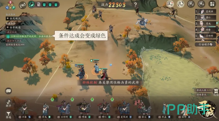 在挑战困难、极难及噩梦三种高难度模式时,部分关卡会附加特殊条件。这些包括限定上阵武将类型的效果加成、禁用特定武将出战,以及敌方自带的增益状态。若出现我方增益条件,需配置符合条件的武将参战,满足后会在布阵界面以绿色标识提示,确保顺利激活增益效果。