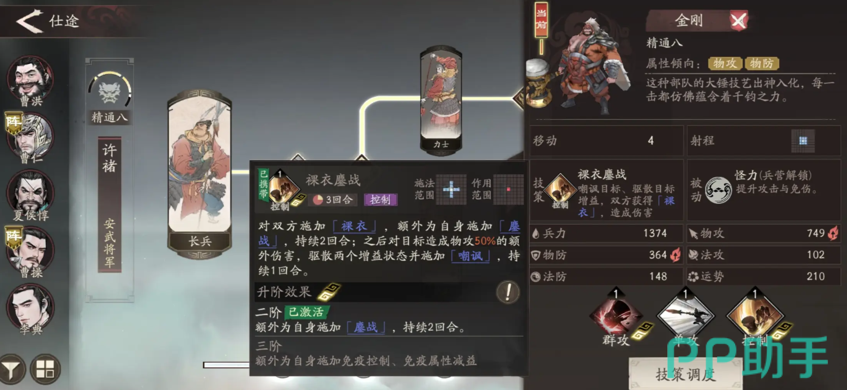 技能“裸衣鏖战”能有效削弱敌方单体目标50%的物理防御,且该减防效果无法被抵抗或清除,非常适合用于挑战高物防Boss。同时,这一负面状态还能提升全队物理输出效率,因此建议优先携带并培养至高阶等级。