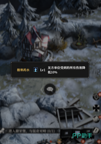 抵达狼牙堡入口后,首先与旅店NPC对话接取寻找温炎草的任务。随后传送至右侧区域,击败精英怪并在其背后的草丛中进行探索。注意:探索该区域需角色耐力值不低于1300,成功获取温炎草后返回交付任务,可获得极寒药水Buff,使全体队员受到的伤害减少10%。