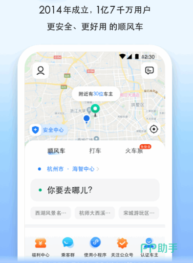 作为大规模运营的拼车平台之一,该应用已成为城市内外出行的热门选择。预约成功后车辆快速抵达,支持市内短途与跨城长途拼车,费用低廉。平台为每位乘客提供高达30万元的承运人责任险,全程开启GPS定位追踪,后台运行时定位不中断,位置信息可实时共享给亲友,全面保障出行安全。