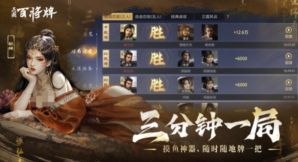 不管玩家是卡牌爱好者还是三国迷都会喜欢上这款游戏,难怪大家都在询问三国百将牌开发商是哪个。上面内容已经为大家讲解的很详细,只需要三分钟一局,玩起来确实很省心,赶紧做好准备去解锁吧。