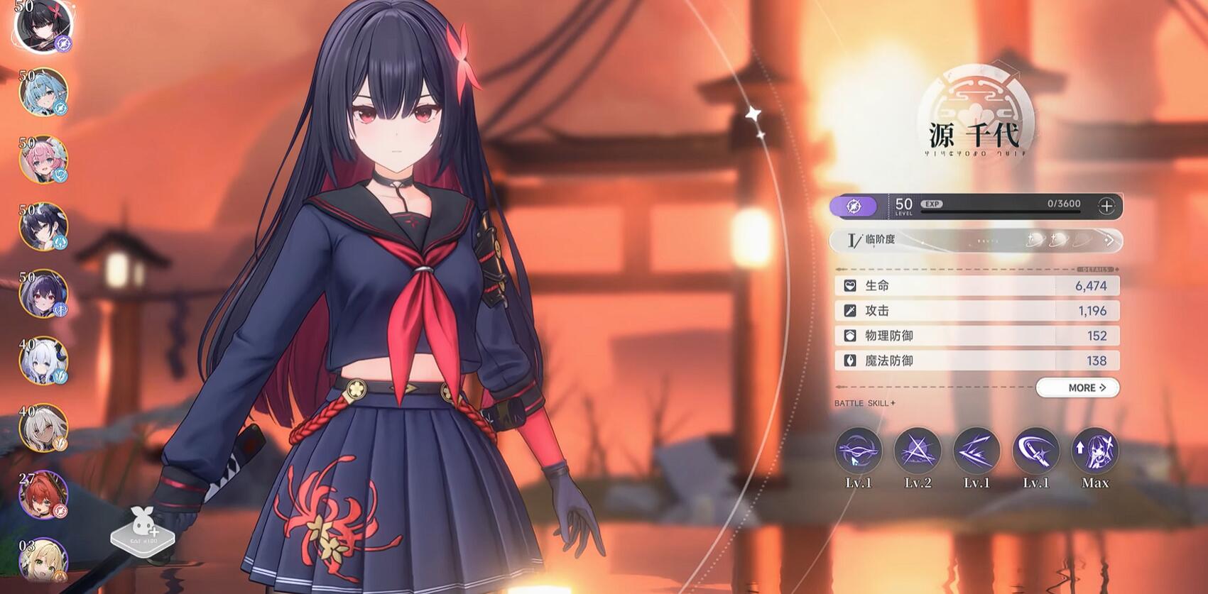 源千代(暗系太刀)他的玩法是普攻五段叠加鬼火后,可以接长按重击释放高倍率斩击。一般可以先打满五段普攻,然后去接星鸣斩去缩短蓄力大招,留火区域加速重击30%。个人觉得她的重击手感设计的非常不错,非常适合新手,但闪避反击判定要一定的操作,大家可以先去练一下闪A,熟悉取消后摇的手感。