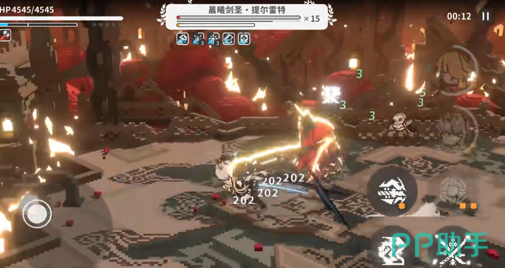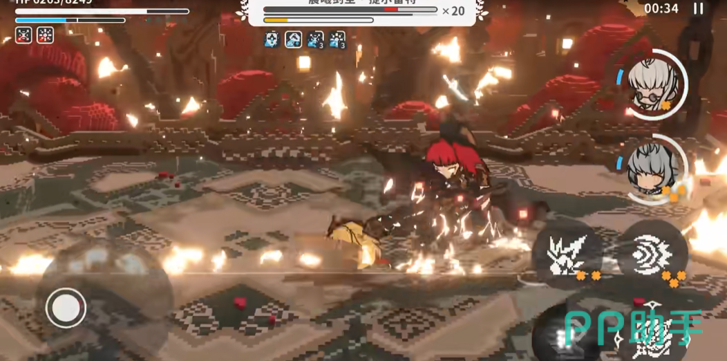 提尔雷特是一个火元素的boss,她的血量非常的厚,足足有18层,在战斗开始以后,玩家可以先切换纳叶上场,纳叶是输出型的的角色,一套攻击可以直接把提尔雷特的血量打下一去一层,提尔雷特的血量到了16层的时候会进行反击,她先会挥舞手中的巨剑跳起来径直辟向对手,这个技能玩家只要躲避就行了,把该技能躲避以后可以在继续进行一套输出。