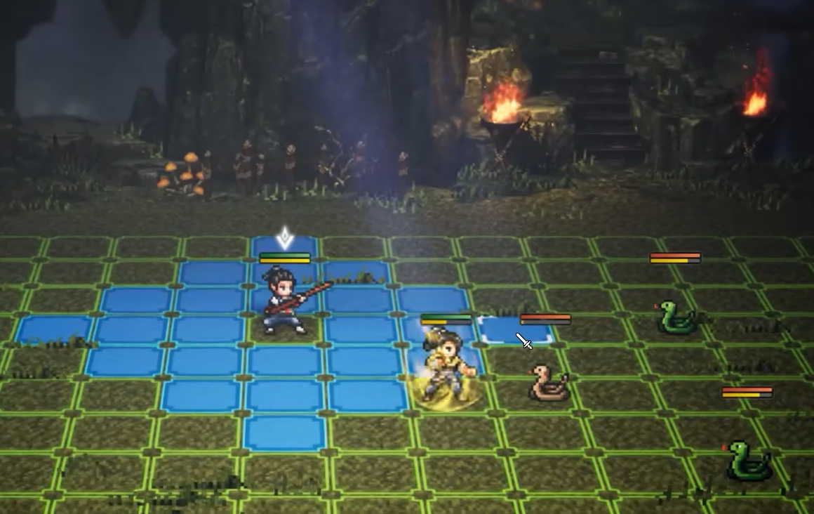 战斗中各位可携带多位角色上阵与敌人展开较量,并且此作可开自动来完成对战,让各位不用进行太过繁琐的操作。同时,它也会在关键战斗前提醒各位目标敌人很强,方便各位根据所需以手动的方式来制定每名角色的行动。其在模式上与战棋相差不大,全部角色的招式都有固定的影响范围,且能全屏的招式很少,所以很需要各位在高难战斗中亲自去指挥各角色在回合内的路线,争取能让招式打到更多的人。此外,可上阵的角色会随剧情变动,部分特定情况下各位会因角色的离开而失去使用他的权限,当然各位也能通过多种方式,令剧情中遇到的伙伴入队,往后就能一直使用他了。