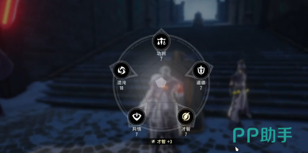 主要是每一回和npc聊天,在选择答案时,其实就已经有了一个悄悄的定义。例如玩家所遇到的是一个小商贩,那不同的选项就可以直接区分出性格路数。如果觉得有一些麻烦,直接一拳选择撂倒那混沌值就可以马上往上跳。而如果想要多说一些,比如用一些阴阳怪气的话聊天,那直接戳穿对方的猫腻,上涨的自然就是才智点。还有就是去帮助老人们去跑腿,也可以有效增加共情点,每一个选项其实都是很明确的。