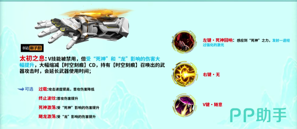 太初之息这个词条可是一个非常好用的词条,太初之息的主词条的会直接把V技能给禁用掉,而且若是想要用右键技能召唤武器的话也是不允许携带技能卡的。