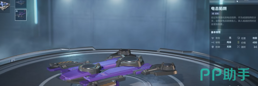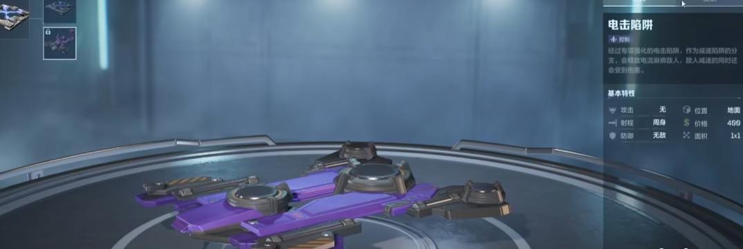 电击陷阱是一种经过了强化的陷阱,这种陷阱属于减速陷阱的分支,陷阱触发厚会释放出电流麻痹敌人,使敌人的速度在降低的同时还带有减速的效果。