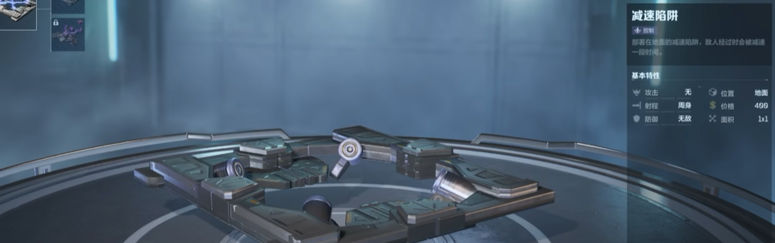 减速陷阱也是控制类的陷阱,陷阱在部署到地面以后,滴露只要踩到陷阱上面就会触发减速效果,敌人就会被减速一旦时间。