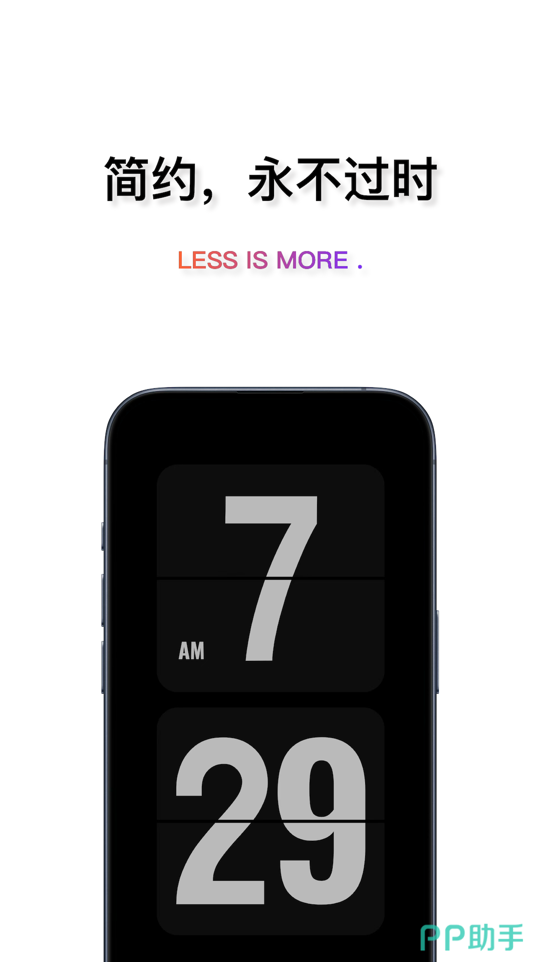 这是一款以极简美学为核心设计的数字时钟应用,广受用户青睐。它采用独特的翻页动画效果呈现时间变化,视觉体验流畅且富有仪式感。同时支持调节LED灯光颜色和亮度,适配不同环境与装修风格,让时间显示更具氛围感。