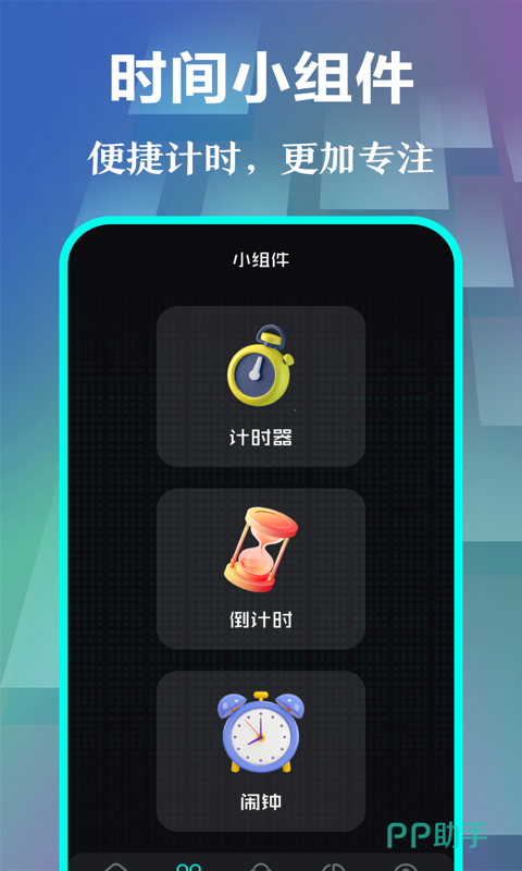 这款应用主打高度自由的桌面组件定制功能,提供六种尺寸规格的小部件供选择,可灵活布局于主屏任意位置。除了基础时间显示外,还能集成倒计时、日期、天气等多种信息模块,满足多样化使用场景,让你的桌面既美观又高效。
