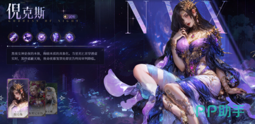 第二个为大家推荐的就是倪克斯,倪克斯这个角色也是可以跟封夷放在T0榜上面,不过他的定位上面跟封夷的群体不太一样,倪克斯作为神话角色,定位是在刺客上面拥有一定的单体爆发输出数值,所以在爆发输出效果上面他是可以使用的,倪克斯本身具有很高的速度行动能力,而且他可以作为一个新手使用的角色,所以在战斗中优势是比较快的移动速度,在实战里面他的高速度就能直接稳定住对手,进行输出的时候,只要目标是敌人的核心输出角色,那么就可以带来更高的创伤,而且在两轮输出之后还可以击杀掉敌人的核心输出定位,目前来说输出数值是足够的,就是在实战里面,他更比较推荐于参与决斗场这个模式,参与其中如果是先杀对方主要输出的话,就可以瞬间压制住其他对面的角色了,大家如果想要此类角色的话,其实实战效果上面没有几个是可以比得上倪克斯的,平时大家说的黑夜女神其实也是倪克斯。