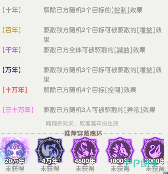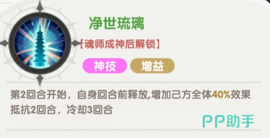 当宁荣荣完成成神进阶后,将获得终极被动技能“净世琉璃”,该技能在第二回合自动触发。触发后可为全队成员赋予40%的控制抵抗效果,持续两个回合,有效抵御眩晕、冰冻等负面状态。此外,随着神技等级提升,其净化能力逐步增强:十年阶段可解除随机3个己方单位的控制状态;百年阶段可驱散敌方2个目标的增益效果;千年阶段具备群体清除己方负面状态的能力;万年阶段不仅能清除敌方3个随机目标的增益,还能为自身附加增益;十万年阶段可解除己方4名角色的控制状态;最终在30万年阶段,可随机清除队伍中3个单位的异常状态,堪称顶级团队净化手段。