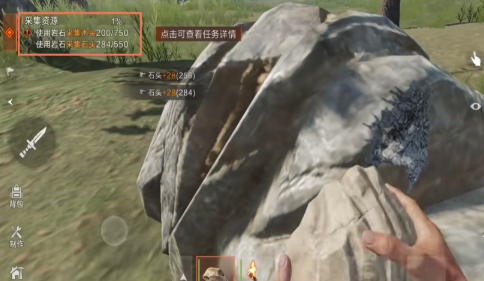 接下来自然就是资源的采集,这是生存的根本。一开始没有工具就只能够靠手去找石头和木头,等到拥有足够的数量之后就可以去做石斧。在有了这个工具之后,那挖石头还有砍树速度相对就会比较快,之后就可以用材料去做一些基础性的武器,例如弓箭。不管是外出采集还是探索,在遇到野兽时基本上都能够自保,没有必要选择跑路。木头还有石头一定要多囤积一些,因为很快就可以创建庇护所,这可是安身立命的根本。另外别忽视纤维材料,用来制作绳索,还有绷带,后期可以救命。