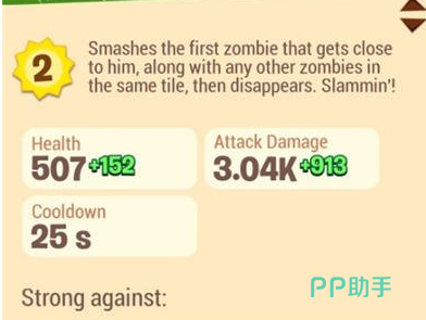窝瓜具体的属性也是很不错的,如果是三级稀有品质,那生命就达到了507点,并且额外还会有152点。虽然说通常生命值并不是很高,但这一点血量就可以有效抵抗僵尸的轻攻击。攻击的伤害还是比较夸张的,基础就可以达到3.04k额外还可以增加913点,这伤害在面对普通的僵尸时也是没有任何压力的。就算是一些比较皮实的精英僵尸,照样也可以直接砸掉大半管血,只是冷却的时间要25秒,所以一定要注意,不要等到冷却时僵尸冲了过来。