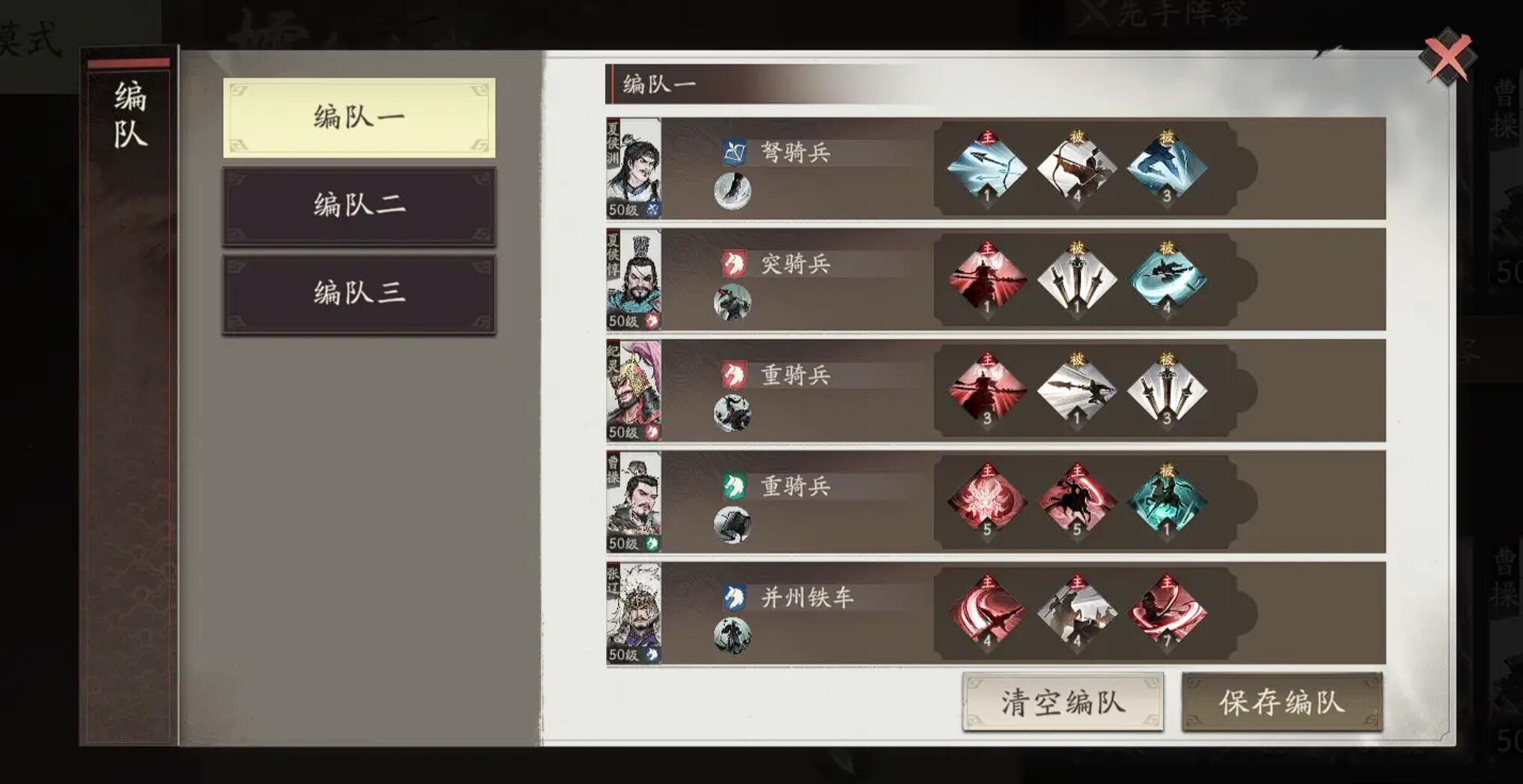 我们搭配的时候还是要注意配合,平民骑兵队推荐用纪灵主将,战法选击其惰归+御敌屏障,副将张辽当锋摧决、乘胜长驱和华雄武锋阵。武锋阵减伤加上纪灵控制,张辽负责爆发,系统本身自带的那个边角料队伍推荐大家也可以参考一下,确实能打过不少主流队。其实系统给的盾兵队也很稳,2输出加一个1肉盾经典搭配,推到第五章没问题。