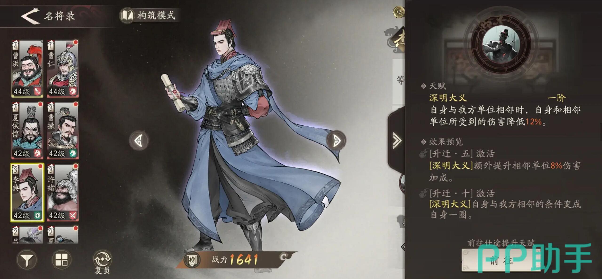 总之李典就是一张看似平淡却越用越香的牌,他不吃资源、不占装备,只靠站位就能把全队血线稳在安全区,后期高阶本里甚至能顶替纯奶位,让输出位多带一个战法位打极限输出。把战法经验优先给到他七级之后效果非常不错,值得大家体验一下。