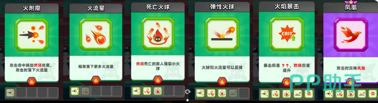 进入中后期,面对高血量BOSS时,必须激活【凤凰】召唤技能。该技能可在每次射击时召唤一只沿固定轨迹飞行的火焰之鸟,持续对路径上的敌人施加火属性打击,无需手动操控,属于被动增伤型神技。此外,【弹性火球】也是值得投资的方向,它能让火流星和基础火球技能产生弹射效果,在多个目标间跳跃,扩大覆盖区域的同时提升总伤害输出。