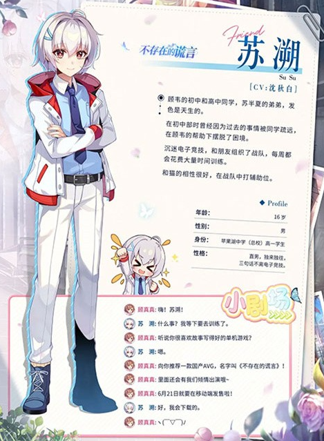 这是一款悬疑的恋爱游戏,在这里大家扮演学生到了新的学校之后认识了几位好朋友,他们组成了一个小组,然后一起去探索隐藏在江城市的秘密。游戏里有很多悬疑解谜的情节,而且还有甜容的恋恋爱情节。这两条线设计的十分优秀,不管我们走哪条路都可以玩的很爽,玩的时候还可以碰到很多搞笑的内容,时不时的会被逗得哈哈大笑。如果想体验悬疑推理,又不想错过浪漫恋爱的玩家们可以来试试这款游戏。