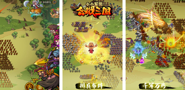 在小人大战游戏中,《小小军团》系列超受欢迎,这款《小小军团:合战三国》,以三国时期的真实历史为背景,通过有趣的即时战略团战玩法,真正体验千人同屏的磅礴气势。从军队经营、开拓疆土之战、国家建设等六大策略玩法,让你体验真实的战争策略,25v25的大混战模式,2000迷你士兵的同屏战场,体验更多热血瞬间。